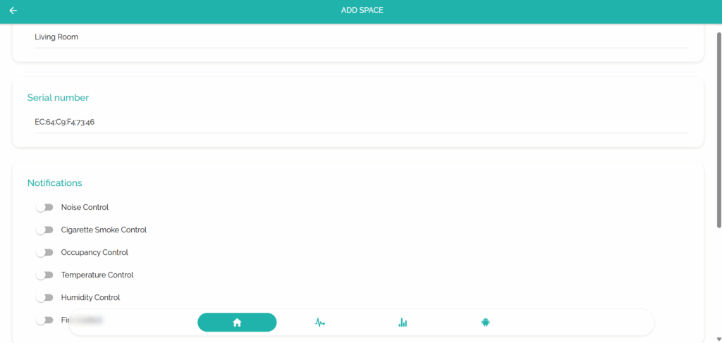 Dentro de la plataforma, accede al espacio creado en el paso 03 y selecciona “Añadir un dispositivo en este subnivel”. Asigna un nombre al dispositivo, pega el número de serie que copiaste anteriormente y haz clic en “Buscar dispositivo en el sistema”. La plataforma realizará comprobaciones de seguridad y, si todo es correcto, mostrará las notificaciones disponibles que puedes activar o desactivar. Haz clic en “Añadir dispositivo” para completar el proceso. El dispositivo aparecerá entonces asignado al espacio seleccionado.